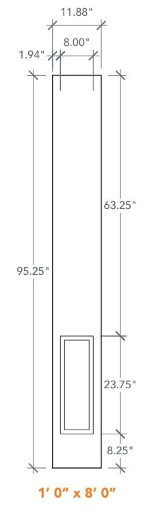 - Dimensions: 1-0 x 8-0