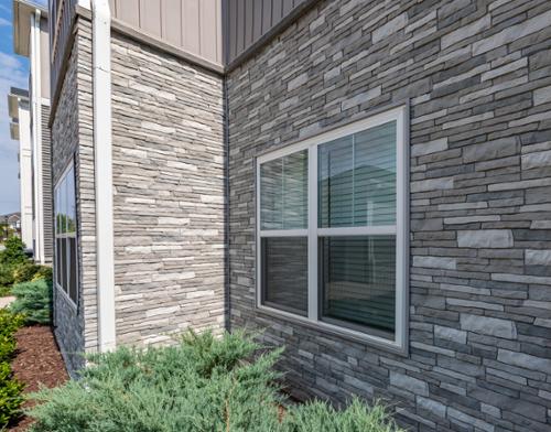TandoStone Stacked Stone features stones of low heights and random lengths. Strong linear patterns and minimal grout lines gives it a contemporary, sharp edged look to complement any exterior finish.