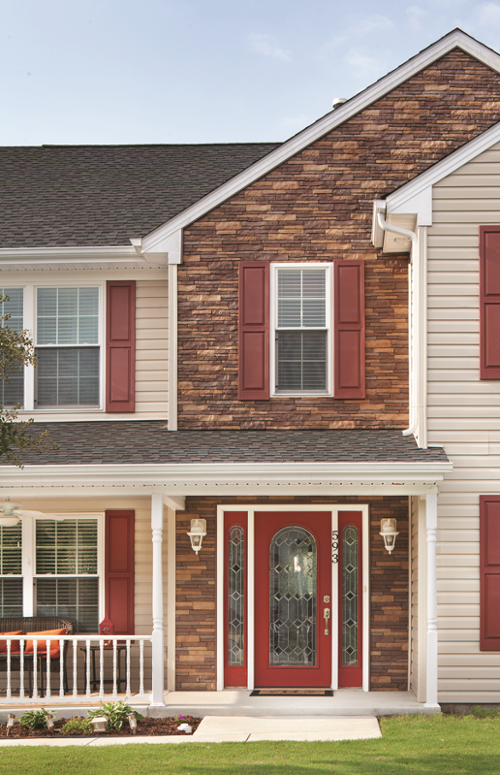 TandoStone Stacked Stone features stones of low heights and random lengths. Strong linear patterns and minimal grout lines gives it a contemporary, sharp edged look to complement any exterior finish.