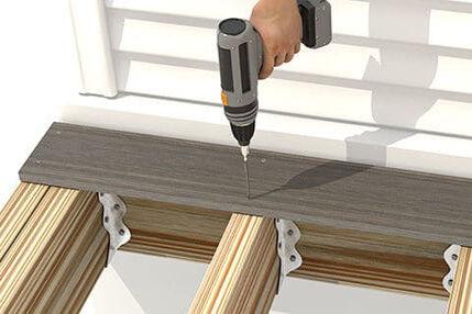 TOPLoc® color-matched deck fasteners are installed from the top down directly into capped composite deck boards in the TimberTech® Advanced PVC decking lines. These fasteners are made of high-quality, 305 grade stainless steel 2 -1/2" screws to provide a fast and easy installation. Refer to the overview section and open the Fastening Guide to find the correct color-matched fasteners for your deck.